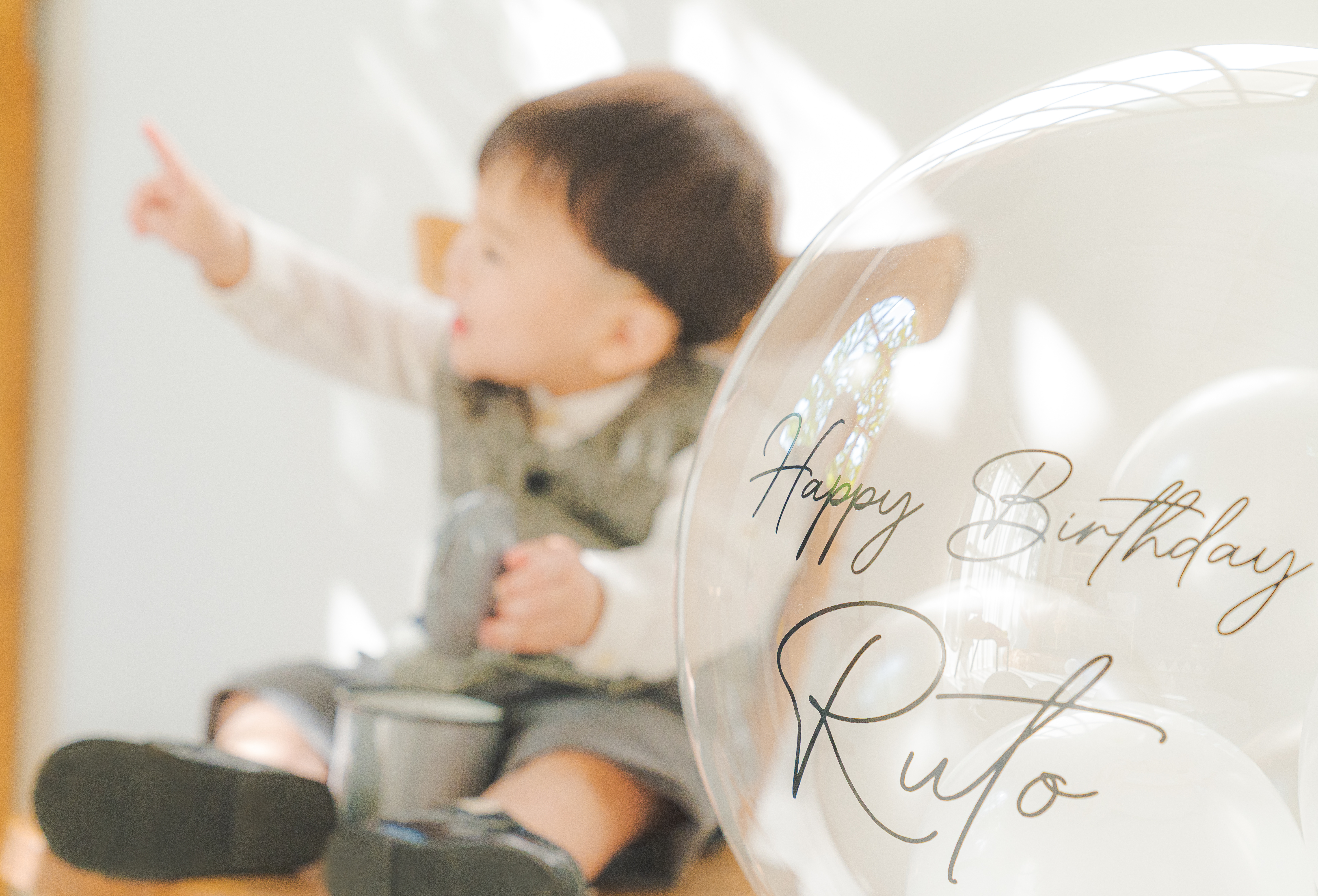 初めてのお誕生日は1人でおすわりやタッチができる頃。かわいいしぐさや表情をたくさん残してあげてくださいね。